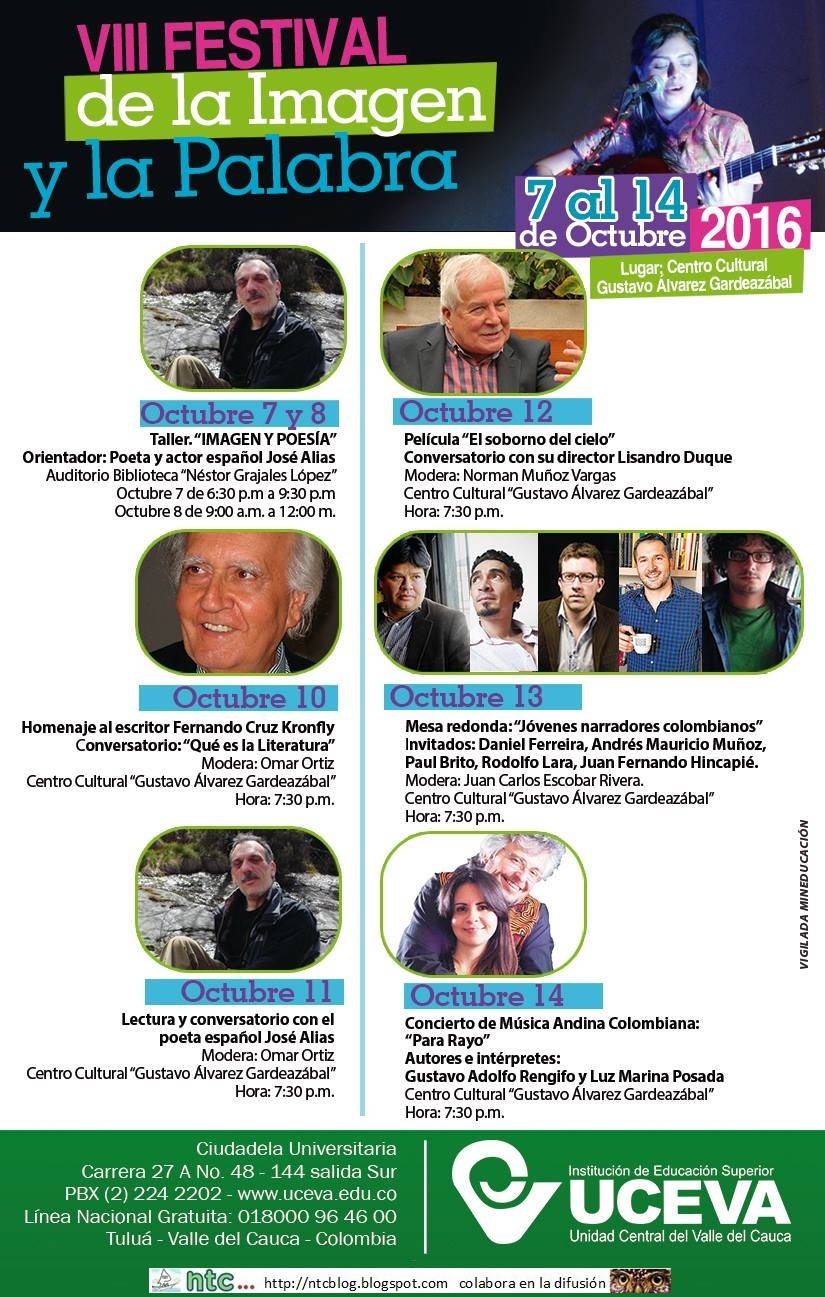 *** FESTIVAL DE LA IMAGEN Y LA PALABRA. Versión VIII. DETALLES y PROGrAMA : http://ntc-eventos.blogspot.com.co/2016_09_14_archive.html . Y Click derecho sobre las imágenes para ampliarlas en una nueva ventana. Luego click sobre la imagen para mayor ampliación